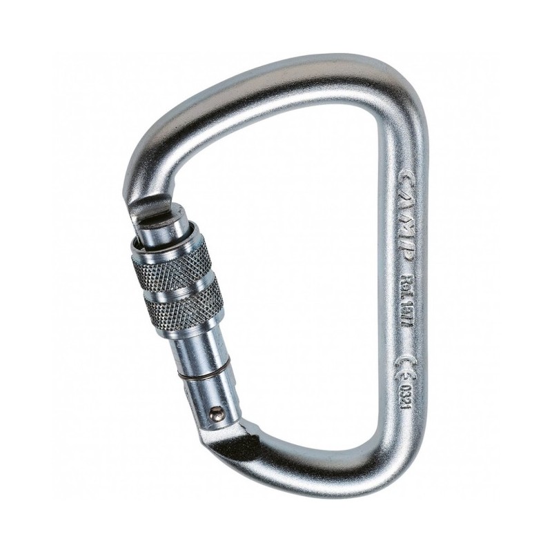 Teräksinen D-mallinen ruuvilukitteinen lukkosulkurengas. Murtolujuus jopa 52Kn! Erittäin kestävä karabiini suuremmalla portin avaumalla (24mm). Sopii hyvin ilma-akrobatiaköysien ripustamiseen, joissa silmukkaa voi olla vaikea saada sisään tavallisen kokoiseen karabiiniin. Sinkitty pinta estää ruostetta.