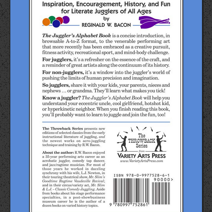Kirjan alaotsikko: The ABCs of Inspiration, Encouragement, History, and Fun for Literate Jugglers of All Ages.