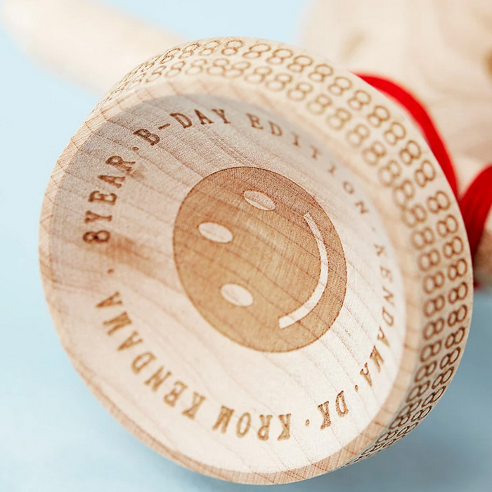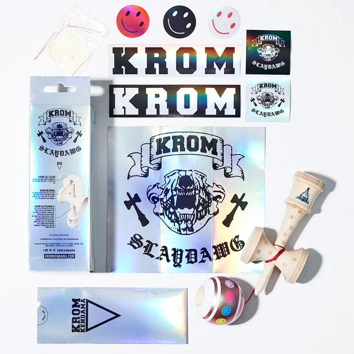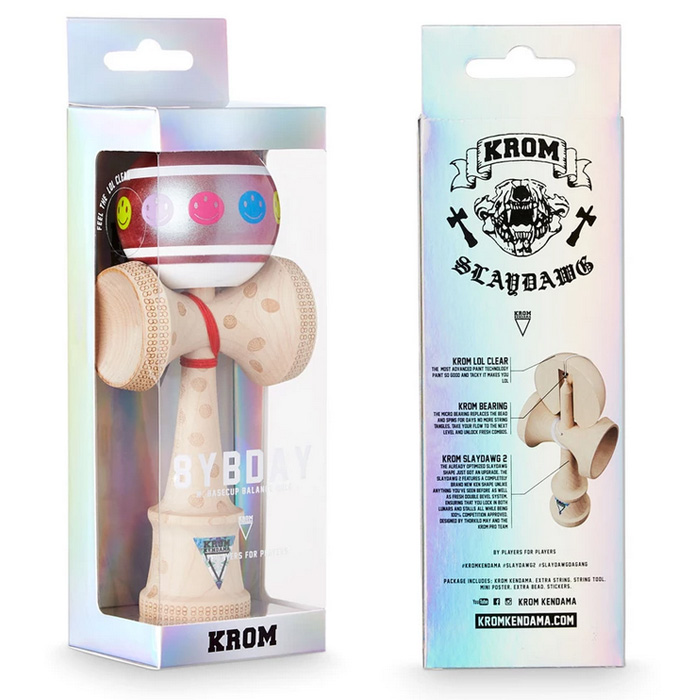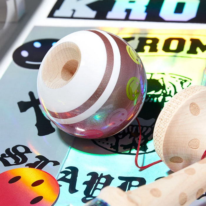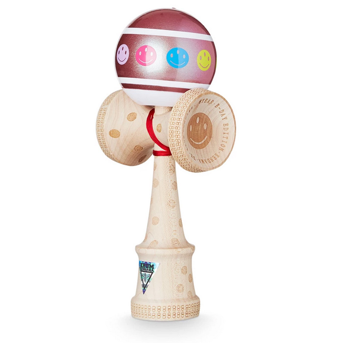 Krom Kendaman 8-vuotisjuhla-Kendama! Kiireestä kantapäähän äärimmilleen hiottua yksityiskohtaa ja tarkkaa viimeistelyä. Pakkaukseen sisältyy juhla-Kendama, varanaru, varajyvä, tarrapakkaus ja minijuliste.