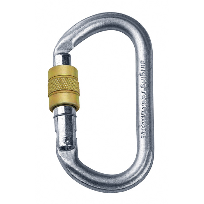 Singing Rock -merkkinen teräksinen ruuvilukitteinen ovaalilukkosulkurengas eli ”karabiini”. Erittäin korkealaatuista terästä, soveltuu vaikeisiin olosuhteisiin. Portin avauma 18 mm. Yksilöllisesti tarkastettu ja numeroitu. (CE EN362)