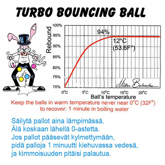 Mister Babachen edullinen mutta laadukas vaihtoehto kalliille silikonipomppupallolle. Pinnassa miellyttävä viimeistely ja hyvä pito. Pomppu on yhtä hyvä kuin silikonipallossa, mutta pallomateriaali on arka kylmyydelle. +15 asteen lämmöstä alaspäin pomppu huononee huomattavasti. Muutoin erinomainen pomppupallo hyvällä hintalaatusuhteella. Kesäkeleillä ja sisätiloissa toimii moitteetta.