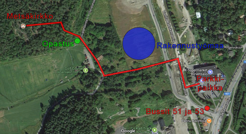 Syvälahdenpuiston Metsäkirkkoon saapuminen sujuu hyvin